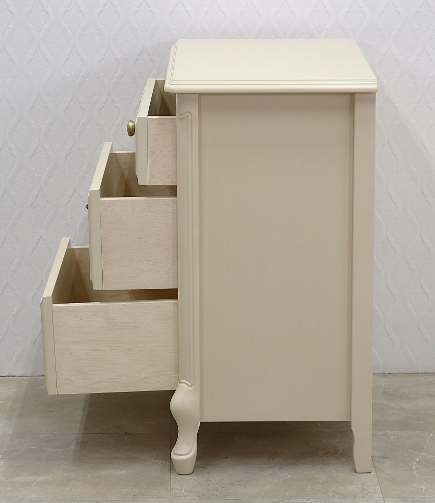 TOKAIKAGU初の『可愛いウチのコ』の為のエレガントで可憐なチェストです。洋服は勿論の事、細々したおもちゃやリード、そしてレギュラーサイズのペットシートなど、美しく整理して収納する事が出来ます。 天板には、写真やお気に入りのぬいぐるみ等を飾れば、『ウチのコ』との楽しい空間が広がります。 同シリーズのハンガーラックとセットでご使用になれます。